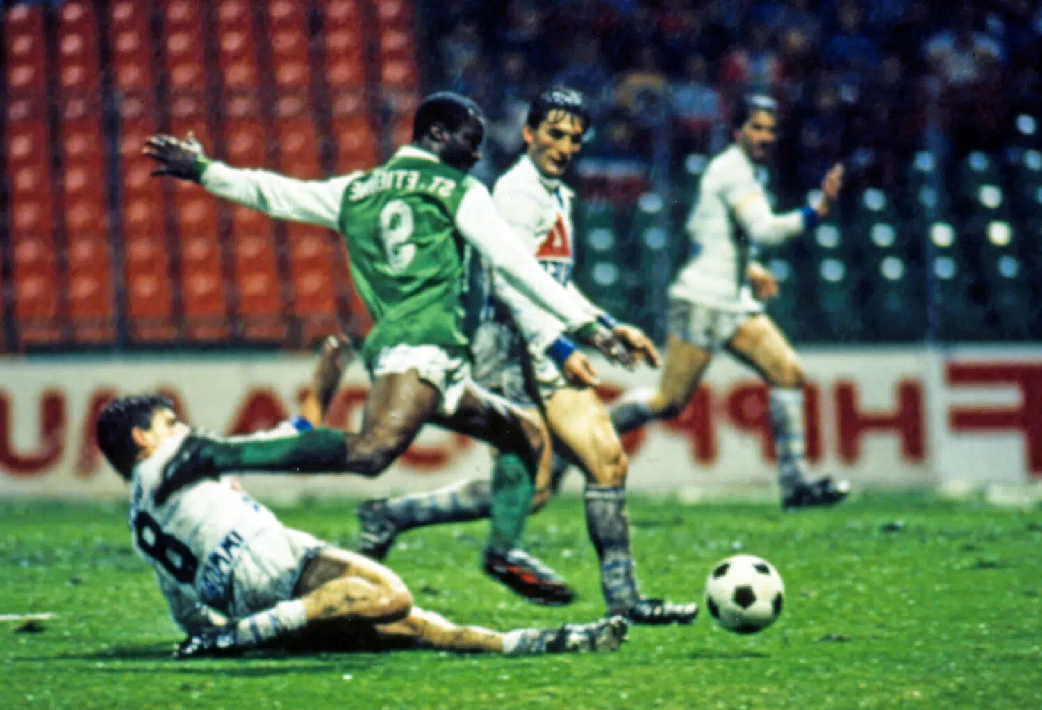 Roger Milla est déjà décisif dès son deuxième match avec l’ASSE contre Valence avec son premier doublé à Geoffroy-Guichard (2-1).
