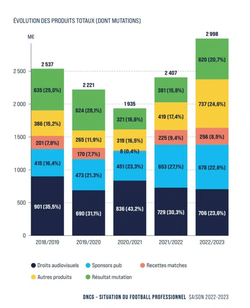 Sans aucun scoop, le football français dépend grandement des droits TV et des transferts (mutations). Si CVC est venu injecter 1.3 milliard sur 3 ans, il s'agit d'un apport unique.
