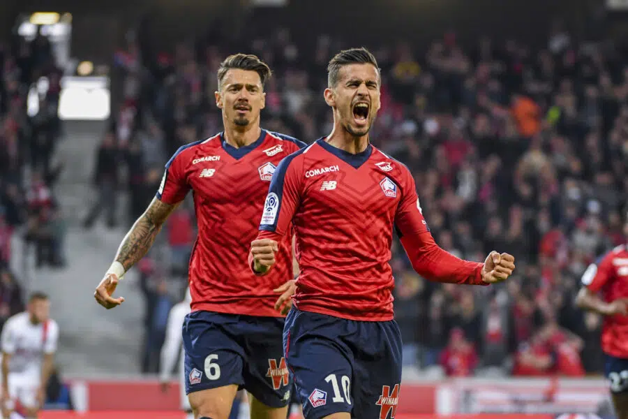Rui Fonte of Lille celebrates his goal during the Ligue 1 match between Lille and Nimes at Stade Pierre Mauroy on April 28, 2019 in Lille, France. (Photo by Aude Alcover/Icon Sport)